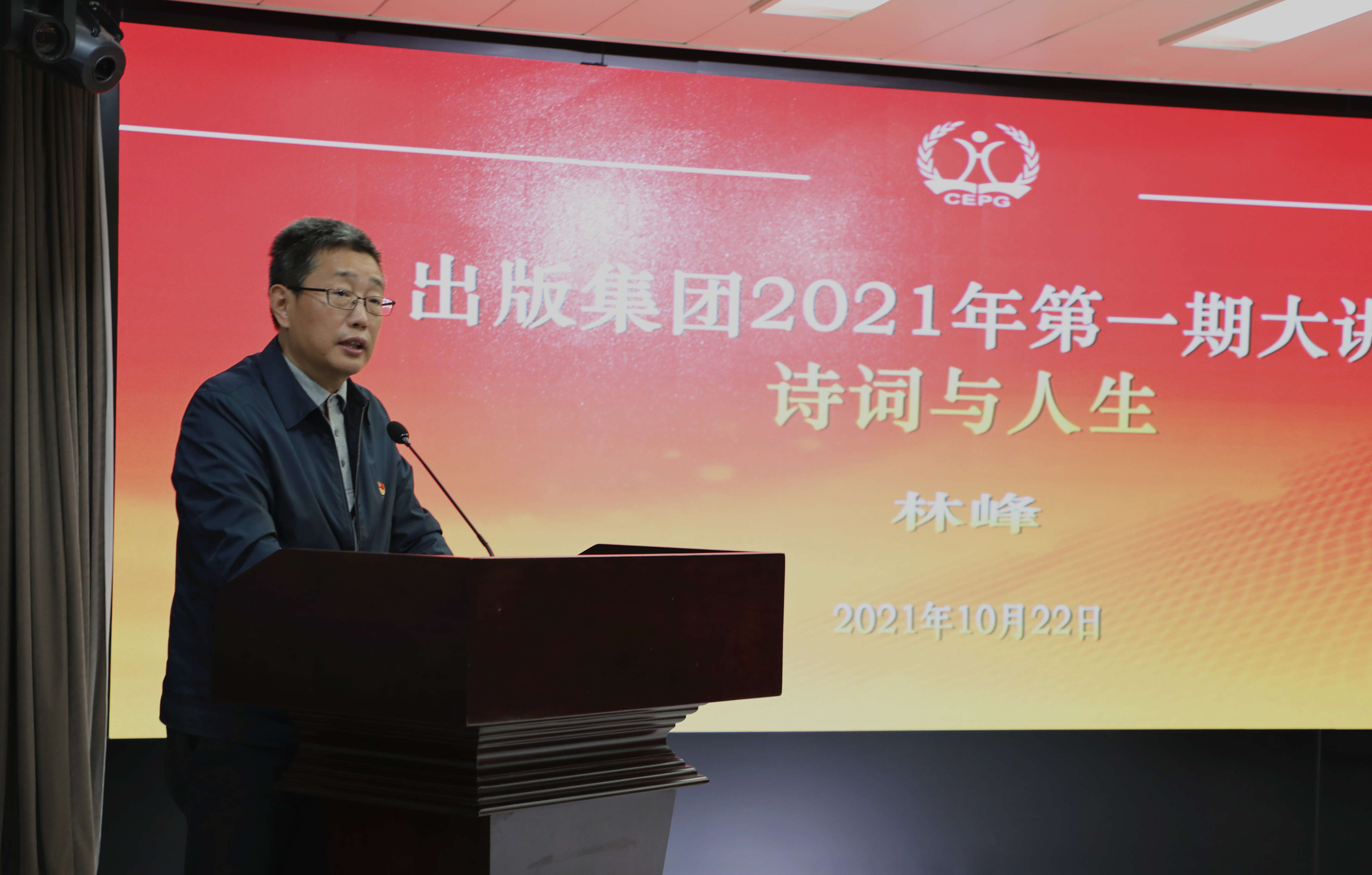 2021年10月22日,出版集團舉辦2021年大講堂活動,中華詩詞學會副會長兼理論研究與評論部主任、中華詩詞雜志社副主編,首都師范大學特聘教授,上海大學中華詩詞創作研究院副院長林峰先生就“詩詞與人生”做專題講座。