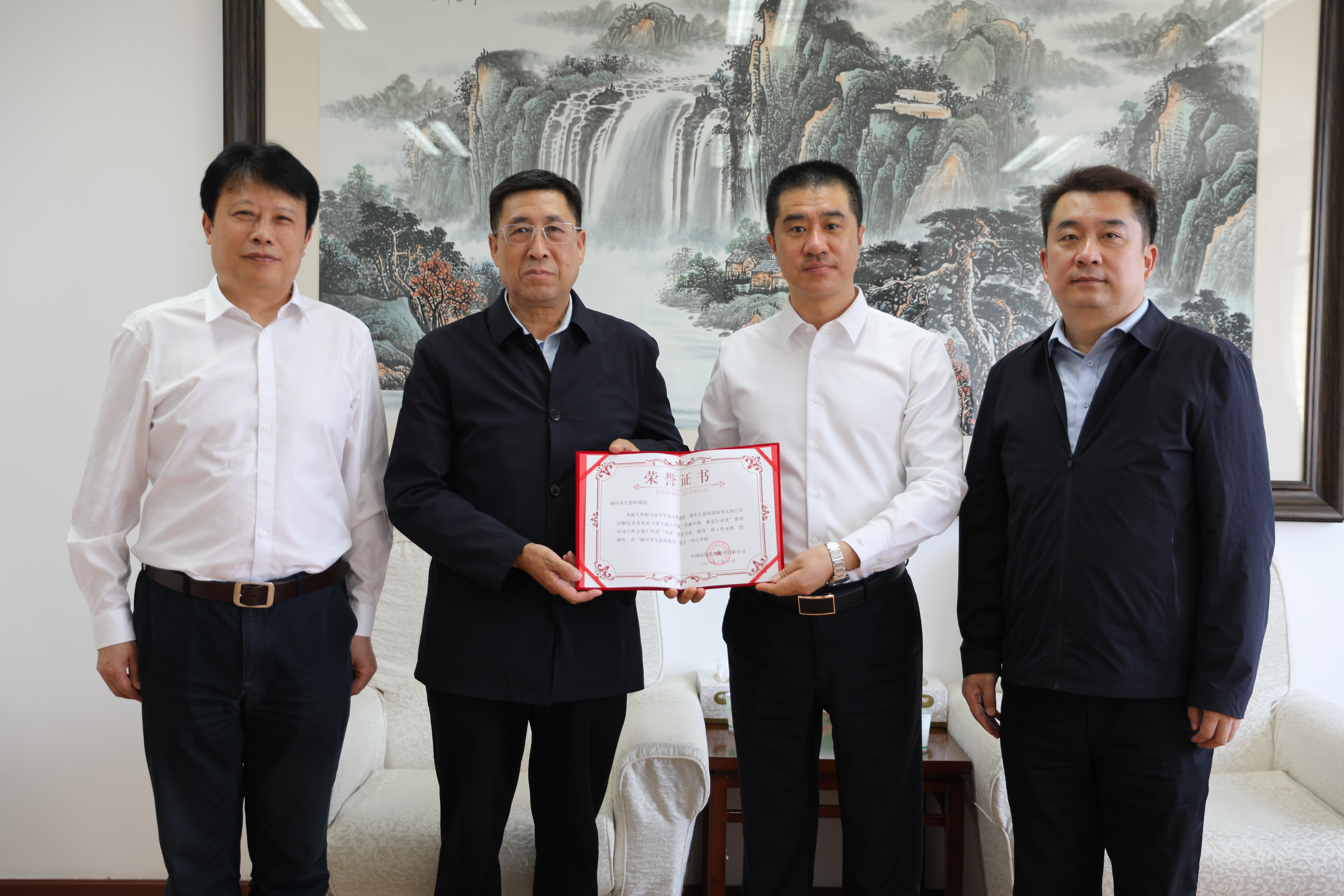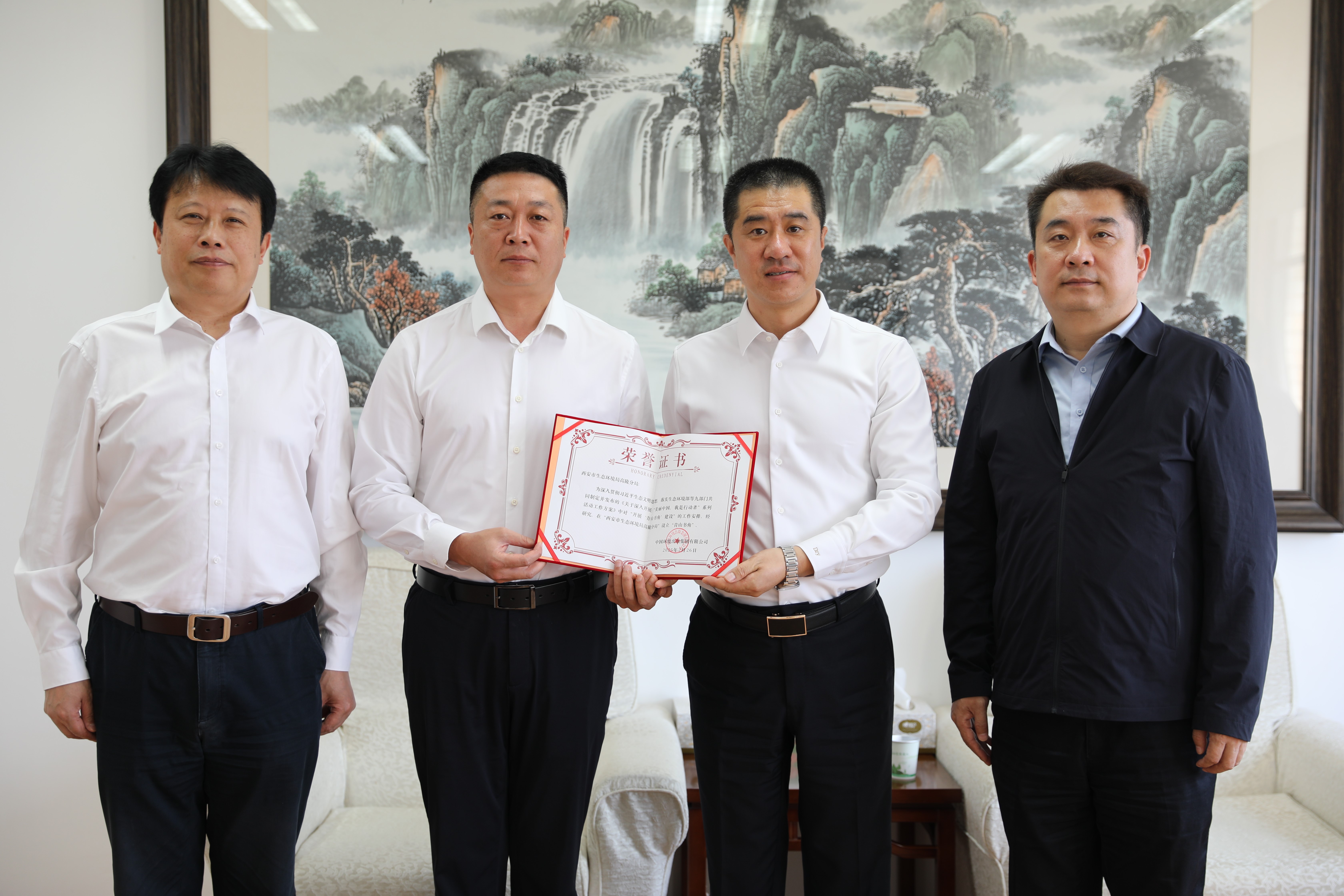 王付瑜對陜西省廳一直以來對出版集團建設發展的關心與大力支持表示感謝,介紹了出版集團圍繞生態環保中心開展圖書出版、期刊宣傳、版權輸出、“青山書角”建設等重點工作,為“青山書角”落戶陜西省生態環境執法總隊、銅川市生態環境局、西安市生態環境局高陵分局頒發證書。張金東介紹了陜西省生態環境保護工作、生態環境宣傳教育工作開展情況、取得的成效和今后的工作重點、發展方向,重點介紹了“當好小衛士、守護大秦嶺”等典型案例。雙方表示,深入貫徹習近平生態文明思想、習近平文化思想,全面落實生態環境保護大會精神,進一步高質量做好生態環保成果傳播與宣傳教育工作是雙方共同的目標,希望通過本次交流學習,共同為全面推進美麗陜西建設盡責盡力。
